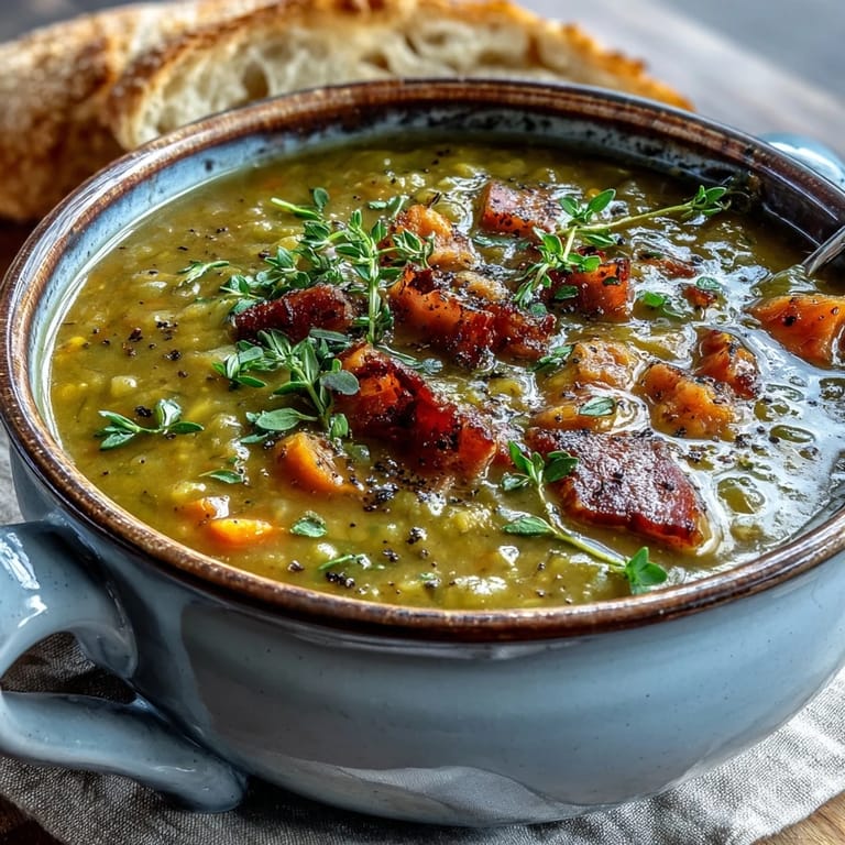 Save on Pinterest My grandmother used to make this soup every January, and I'd watch the kitchen transform into something almost magical as the split peas softened into a golden-green cloud of warmth. She'd always save the ham bone from Christmas dinner, wrapping it carefully in foil like it was treasure, and honestly, it kind of was. The first time I tried making it myself, I forgot to rinse the peas and ended up with a gritty mess, but that failure taught me more than any perfect batch ever could. Now, decades later, I make it the way she did, and the smell alone brings people into the kitchen asking what's for dinner.